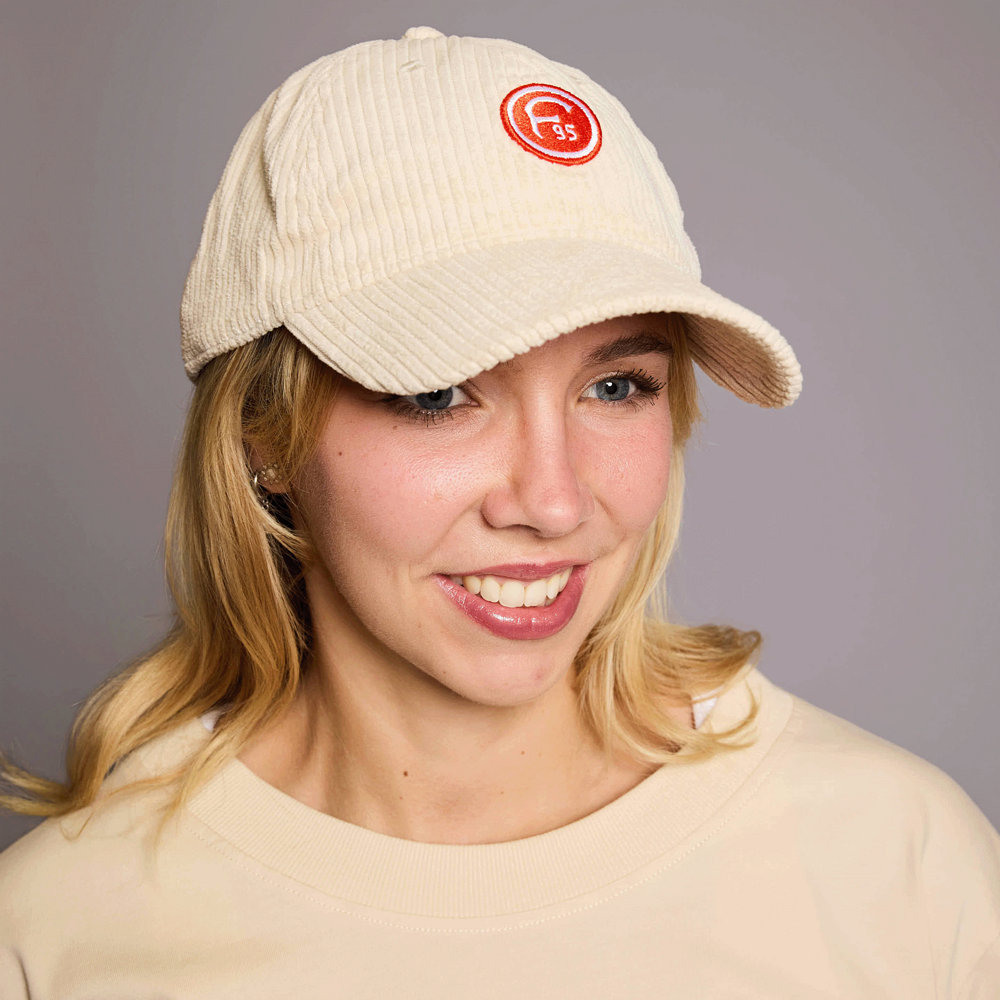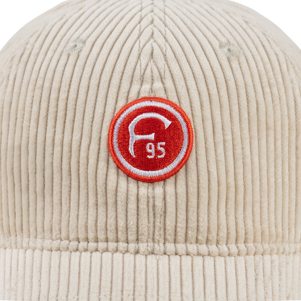 Unsere Baseballcap "Reeser Platz" rundet die gleichnamige Kollektion perfekt ab, aber lässt sich auch alleine optimal tragen. Die beige- bzw. sandfarbene Cap präsentiert eine Rippstruktur und durch die Farbe wird ein starker Kontrast zum darüber gestickten F95-Retro-Logo erzeugt. Insgesamt transportiert die Cap ein lässiges, urbanes Feeling, das durch den Retro-Flair passend ergänzt wird.