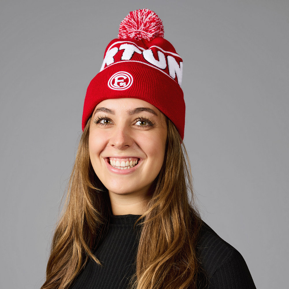 Mit unserer Bommelmütze "Flingern" kannst Du im Winter Deinen Kopf einerseits wärmen und gleichzeitig auch die ganz klare Botschaft nach außen transportieren, welcher Verein Deine Nummer Eins ist. Die rot-weiße Bommelmütze präsentiert auf der Vorderseite unser F95-Logo und trägt als Highlight den weißen Schriftzug "Fortuna" in Großbuchstaben, der sich über die Mütze zieht. Dabei sorgt das hervorstechende Material für einen besonderen Effekt.