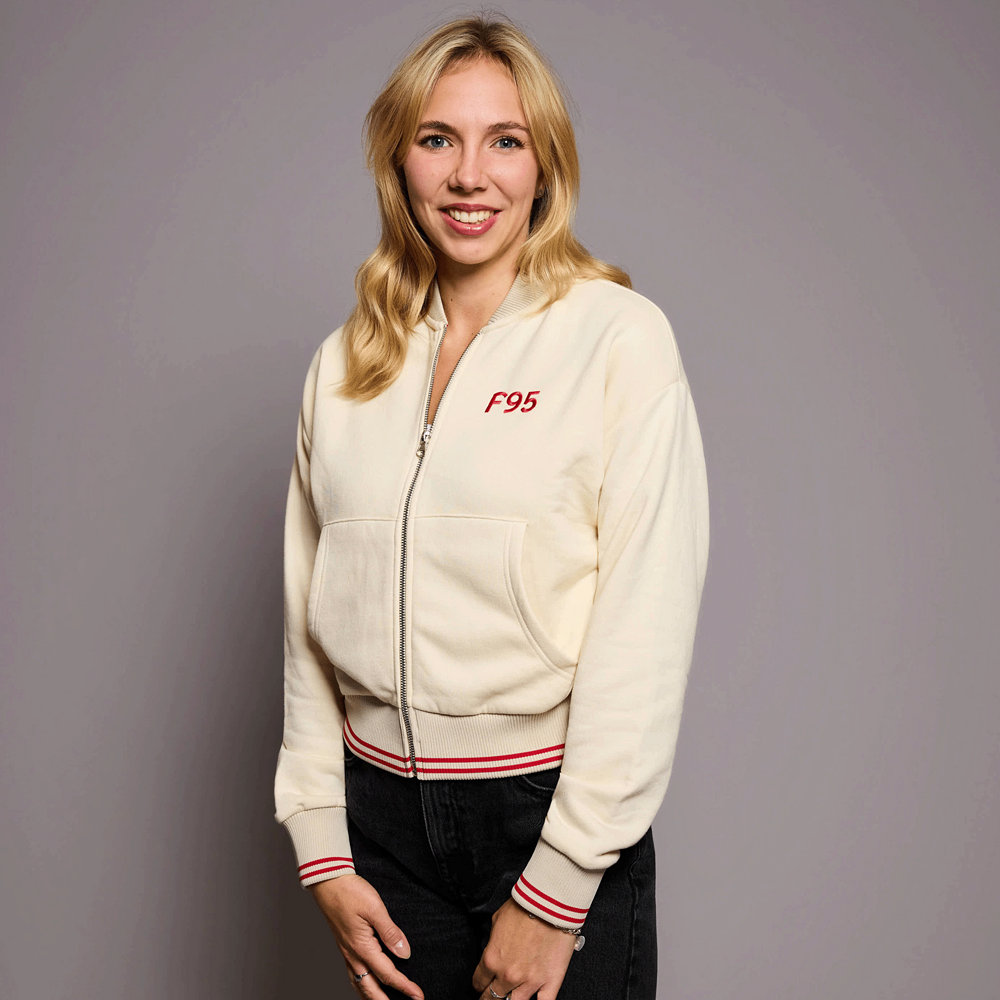 Mit der stylischen Fortuna Damenjacke "Hoferhof Straße" zeigst du deine F95-Liebe auf dezente und gleichzeitig wirkungsvolle Weise. Die Jacke in cremeweiß überzeugt mit sportlicher Optik, weichem Material und durchdachten Details: Auf der linken Brust sticht ein leuchtend roter "F95"-Schriftzug ins Auge. Die roten Streifen am Saum und den Ärmelbündchen setzen farbliche Akzente und greifen das Design harmonisch auf. Dank ihres lässigen Schnitts und der praktischen Eingrifftaschen lässt sich die Jacke ideal im Alltag kombinieren – ob beim Stadtbummel durch Düsseldorf, auf dem Weg ins Stadion oder entspannt zu Hause.