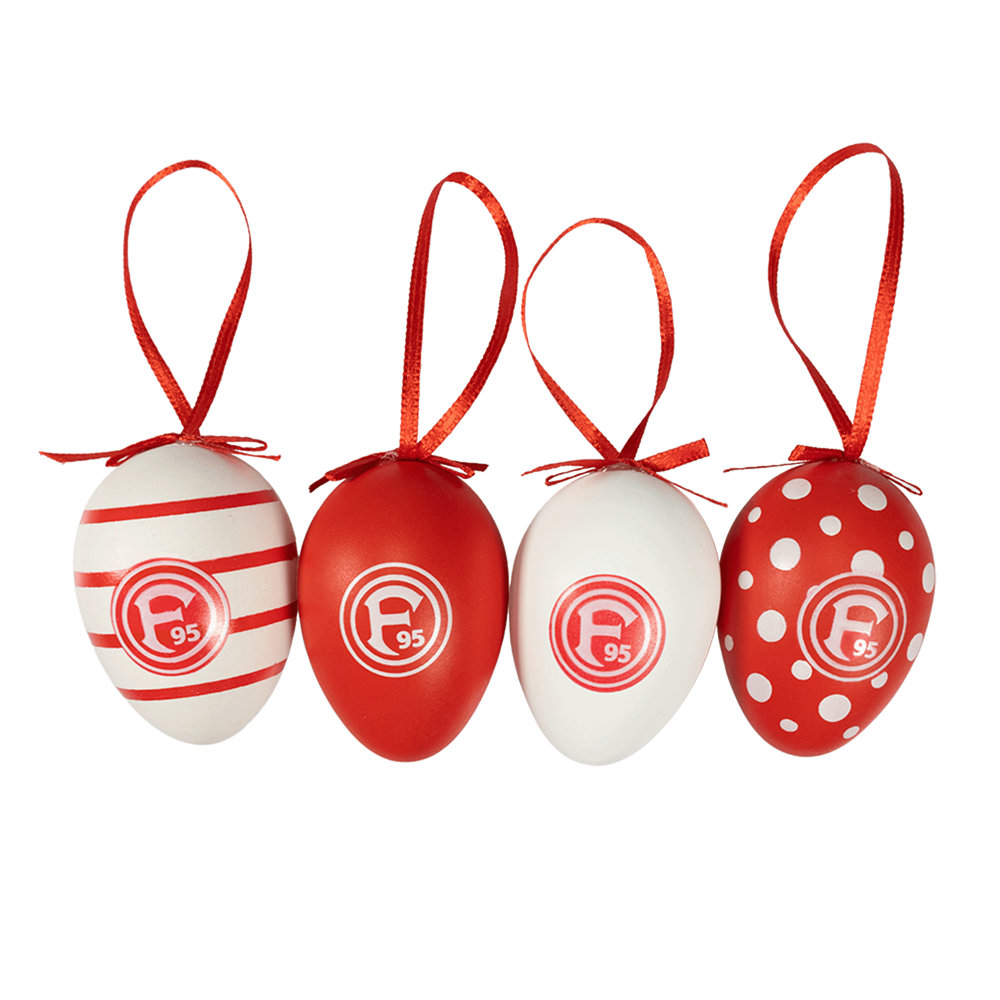 Mit unserem Ostereier 4er-Set kannst Du Dich perfekt auf Ostern einstimmen und Deine Wohnung entsprechend schmücken. Die vier Eier sind jeweils mit unterschiedlichen Mustern gestaltet und tragen mittig unser F95-Logo. Die rot-weiße Bemalung sorgt endgültig für optimale Fortuna-Atmosphäre.