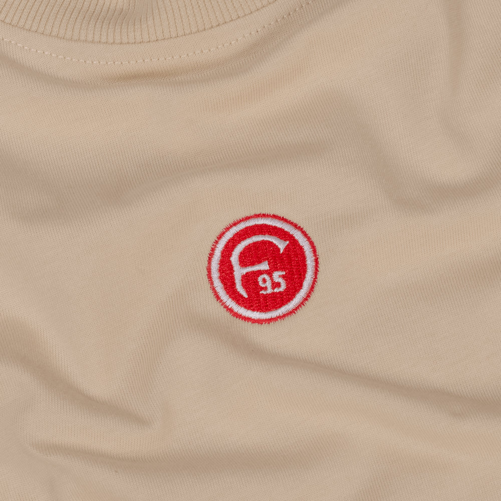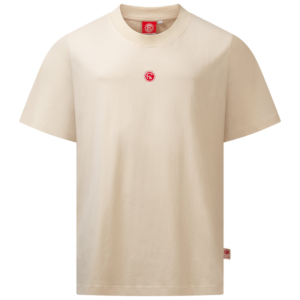 Das Fortuna T-Shirt "Reeser Platz" überzeugt durch seine Farbe in Kombination mit dem Retro-F95-Logo auf der Brust. Es ist ganz in einem hellen Beige- bzw. Sandton gehalten. Durch den breiten Saum am Kragen und vor allem durch den dezenten Stick des rot-weißen Logos werden optische Highlights gesetzt.