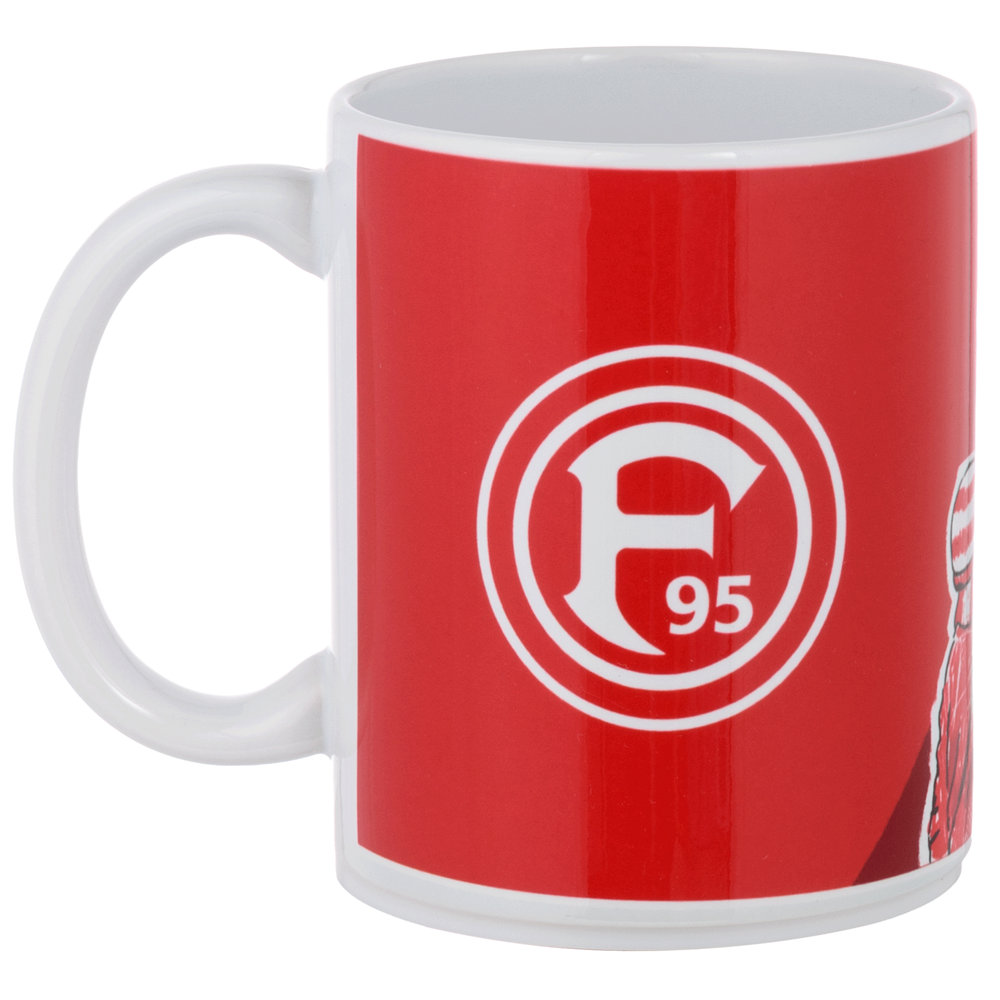 Die rote Fortuna Tasse "Bester Opa" zeigt das F95-Logo sowie eine Zeichnung eines Großvaters mit Kind, zwischen denen der Schriftzug "Bester Opa" zu sehen ist. Dadurch wird die Tasse das perfekte Geschenk für Deinen Opa.
