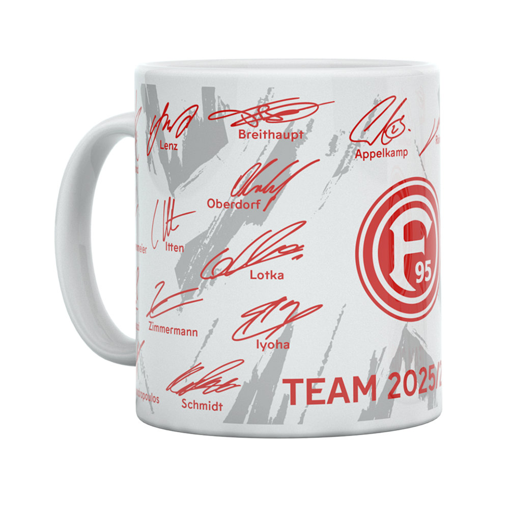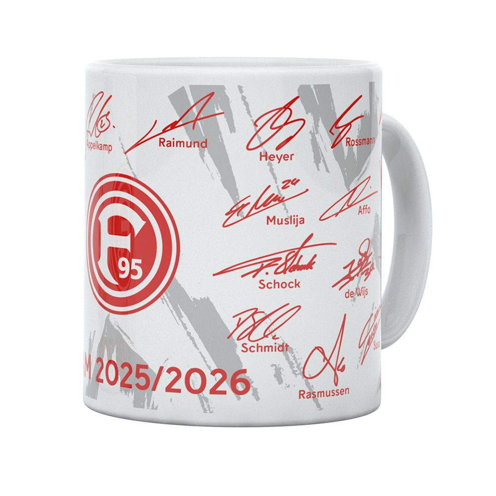 Unsere Tasse mit Unterschriften 2025-26 ist das perfekte Souvenir für alle Fans. Die Unterschriften der Spieler auf dem Design im Stil unseres Auswärtstrikots machen die Tasse zu einem einzigartigen Sammlerstück. In der Mitte ist das F95-Logo abgebildet, das vom Schriftzug "Saison 2025/2026" komplettiert wird.