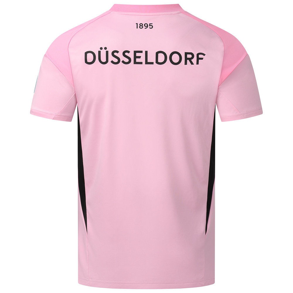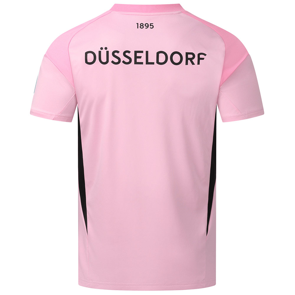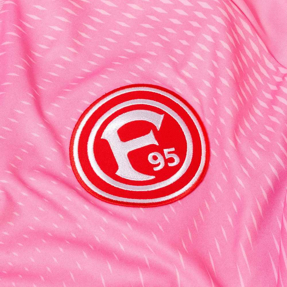 Sehr oft nachgefragt, nun ist es endlich so weit: Das Fortuna Torwarttrikot der Saison 2025/26 gibt es jetzt auch in der Kurzarm-Variante! Es besticht durch seine Farbwahl und sein dynamisches Muster, das die Trikotvorderseite ziert. Die Rosa- bzw. Pinktöne erzeugen einen schönen Kontrast zur schwarzen Schrift, in der unser Sponsor Targobank und Ausrüster adidas gehalten ist. Auf der Brust prangt natürlich das rot-weiße F95-Logo. Den linken Ärmel ziert unser Partner Metro Chef.
