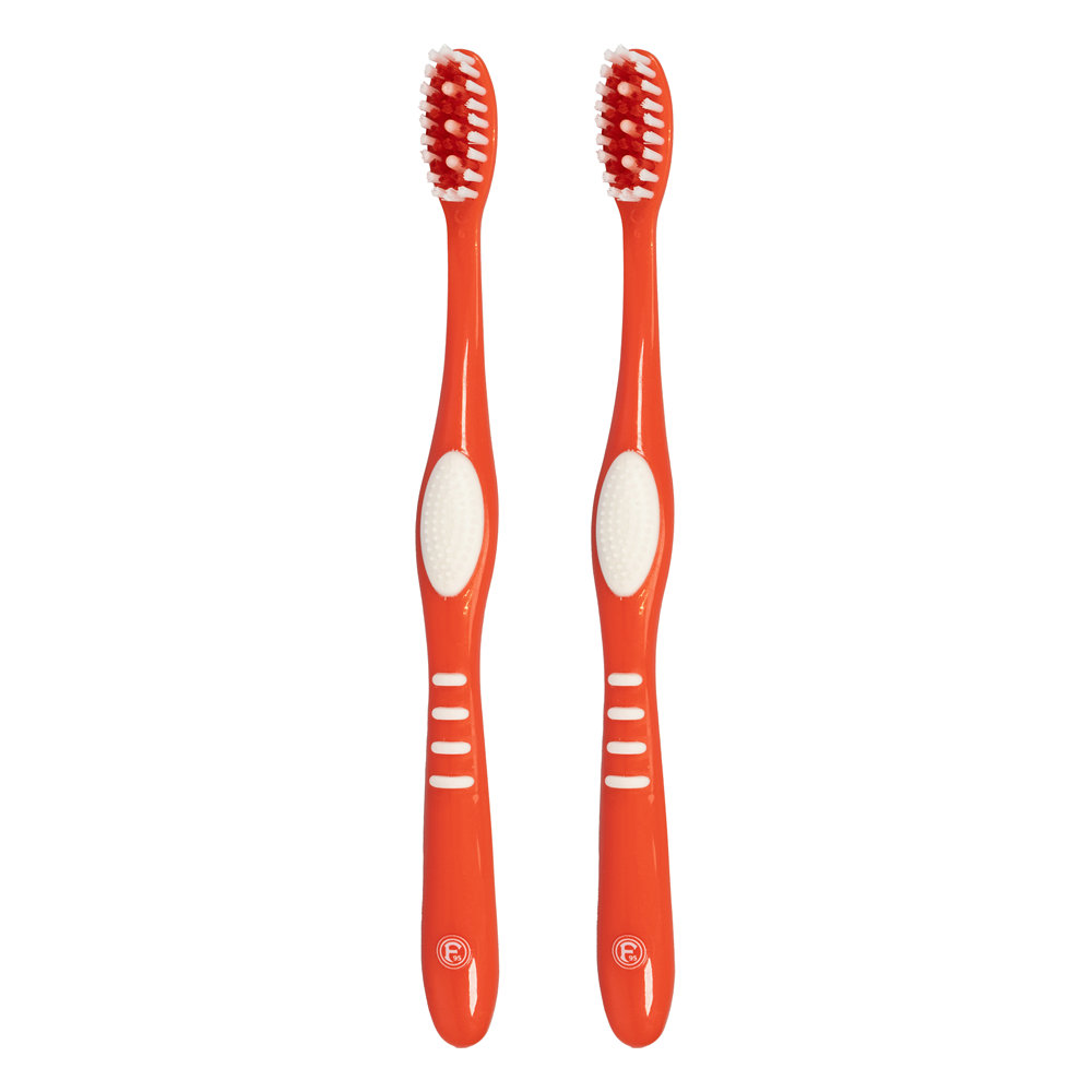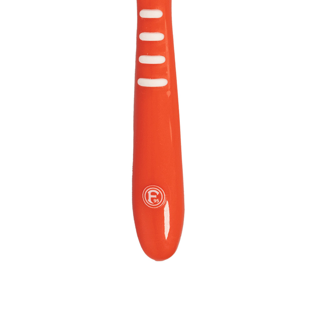 Unsere Zahnbürste im 2er-Set lässt Deine Zähne in sauberem Weiß erstrahlen. Farblich ist die Zahnbürste in Rot-Weiß gehalten. Zudem ist unser F95-Logo am unteren Ende des Griffs zu sehen.