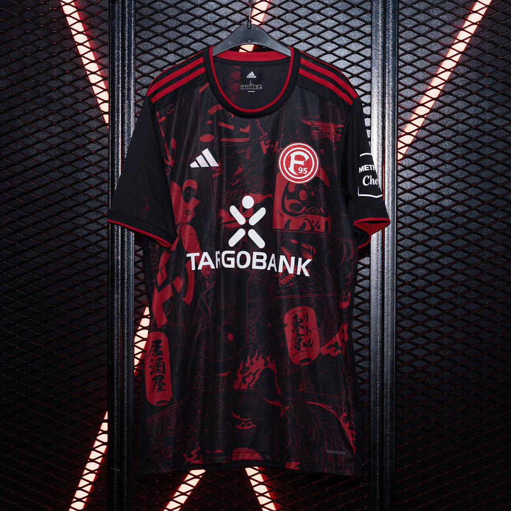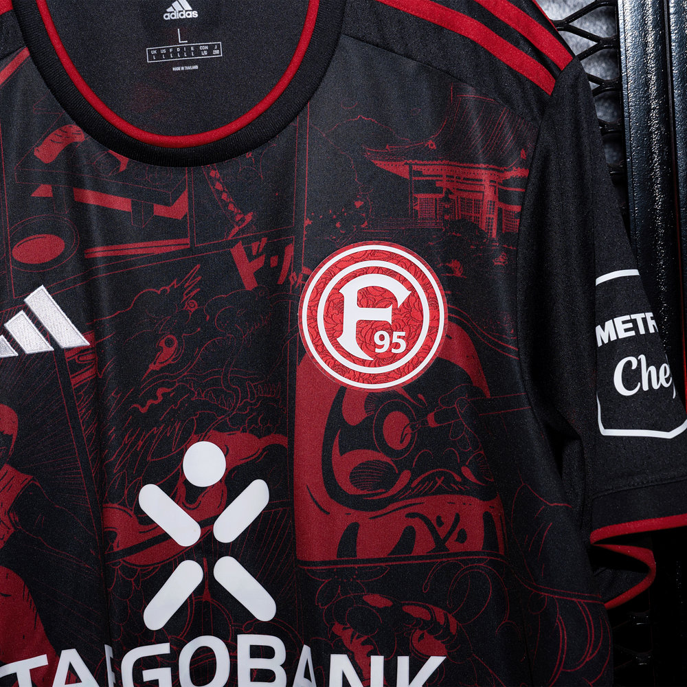 Das Sondertrikots "Japan - Katana" stammt aus der Saison 2024/25 und zeigt die besondere Verbindung zwischen Düsseldorf und Japan. Das Design im Manga-Stil auf der Vorderseite des Trikots stammt von dem Künstler Takumi Ogata und enthält viele einzelne Motive mit verschiedenen Bedeutungen, die sich auf Japan, die Landehauptstadt und Fortuna Düsseldorf beziehen. Das Trikot wird außerdem durch besondere Details wie ein Lotusmuster im F95-Logo und eine Japan-Flagge im Nackenbereich geziert, in deren rotem Punkt sich der Düsseldorfer Löwe befindet.