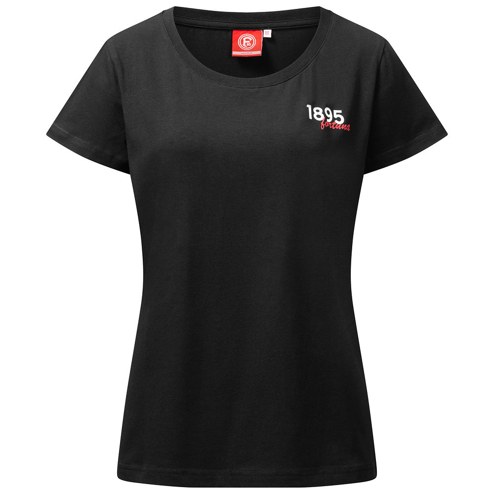 Das T-Shirt "Röhrenstraße" weist dezent, aber eindeutig auf unseren Klub aus Düsseldorf hin. Das schwarze Shirt zeigt im linken Brustbereich eine weiße "1895" in unserer Schriftart Fortuna Sans. Darunter steht geschwungen und in rot "Fortuna", damit keine Zweifel offen bleiben, für welchen Verein Du alles gibst.