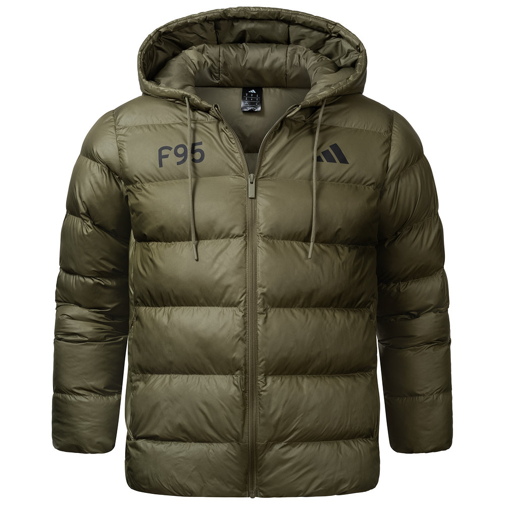 Die adidas Steppjacke "Behrenstraße" hält Dich an besonders kalten Tagen schön warm und Du bist gleichzeitig mit Deinem Verein ausgerüstet. Die Jacke kommt in einem olivgrünen Ton und besticht durch ihre Stepp-Optik in breiten Balken. Auf der linken Brustseite sorgt in Schwarz ein dezenter "F95"-Schriftzug für den Vereinsbezug, während das adidas-Logo auf der rechten Seite den sportlichen Look abrundet. Die Kordeln am Kragen ergeben ein zusätzliches Detail.